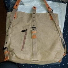 Got a canvas bag. Happy. Quality is good. Threads do not hang, the seams are even, the zippers all work. A lot of pockets are my favorite theme. I washed it right away. She's wet in the photo. I still like vertical pockets. .. It's super. It is very convenient to get the phone or travel without removing the backpack. thanks
