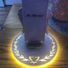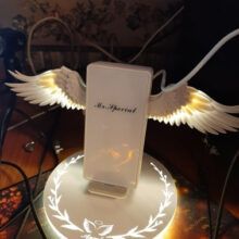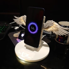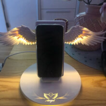 The wireless charger has a special, “extra” design. When you put the phone on, the angel’s wings will unfold, and the base will have an angel’s aura. The glossy and sleek surface looks very novel and elegant.