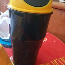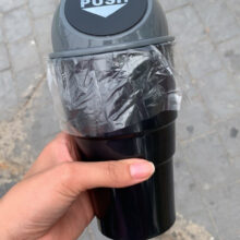 It is super easy to put your garbage into, and it is also spill-proof. The plastic cover can also be removed to facilitate cleaning.