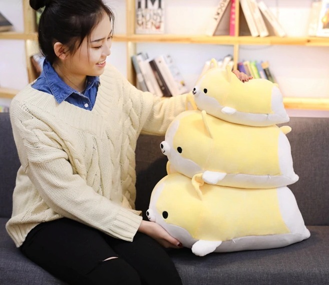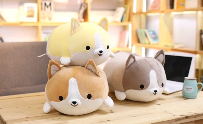 ♥ A cute corgi plush with round eyes, a smiling little mouth, and a fluffy body makes it a perfect TV-watching companion or cuddle buddy at night.