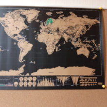 Covered with premium gold foil which lays above a beautiful colorful world on a high-end matte black sheet. We use some of the finest materials to create the most stunning maps.