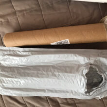 Map come packing in cardboard tube. Have them do frame but is beautiful. Excellent gift for those who love traveling.