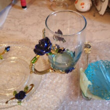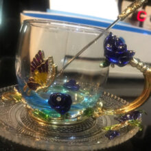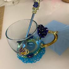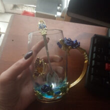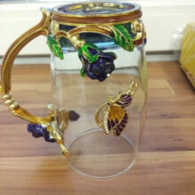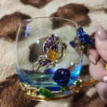 Handmade Beauty And Novelty Enamel Cup is made of high-quality eco-friendly metal and crystal clear glass, finished with crystals and enamel, this mug is a unique art between vintage, dreamy, and luxurious style. It will improve your lifestyle and artistic accomplishment. Stand out with butterfly and rose flower designs on it, we believe it will become your favorite glassware, and it can even be used as a decorative piece for your kitchen and house!
