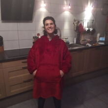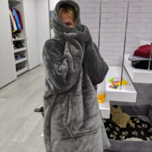 The coziness of a blanket with the fit of your favorite sweatshirt is here. With extra-large sleeves, a giant warm hood, and a roomy front pocket, the blanket keeps you warm and cozy while lounging at home, watching TV, family game night, camping, sporting events, or anything in between.